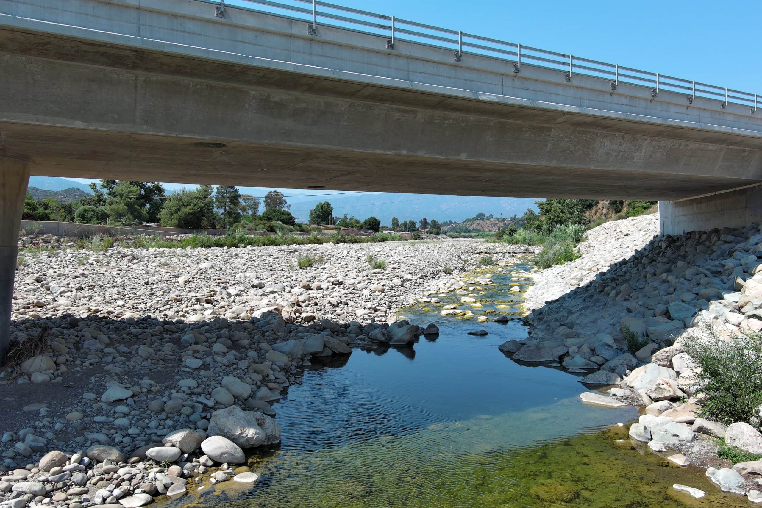 The replacement of the Santa Ana Boulevard Bridge was the first major project component of the Matilija Dam Ecosystem Restoration; it was one of five public infrastructure projects that must be completed before the eventual removal of the Matilija Dam can take place. The $16.5M project replaced an existing 210-foot long bridge with a 350-foot bridge to widen a constricted section of the Ventura River. Santa Ana Boulevard was also widened to accommodate pedestrian facilities and bike lanes, grades were adjusted, and utilities were relocated.